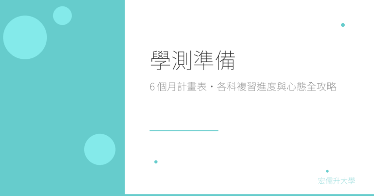 學測倒數半年如何逆襲?這份「學測 6 個月準備計畫」為你拆解各階段複習重點,從基礎打底、題型衝刺到模考演練。內含國英數各科複習順序與心態建設,助你精準分配時間、提升學習效率,考取心目中的理想校系!