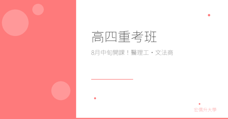 高雄宏儒重考班,專為學測、108課綱考生設計。提供小班制教學、1對1專業解惑時間及人性化管理,鄰近高雄火車站、美麗島捷運站,交通便利。115學測高四班開始劃位,立即預約最佳座位!